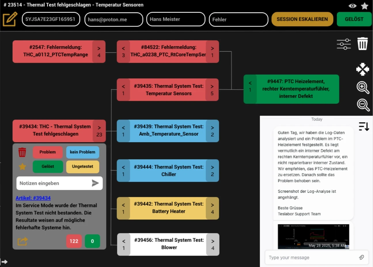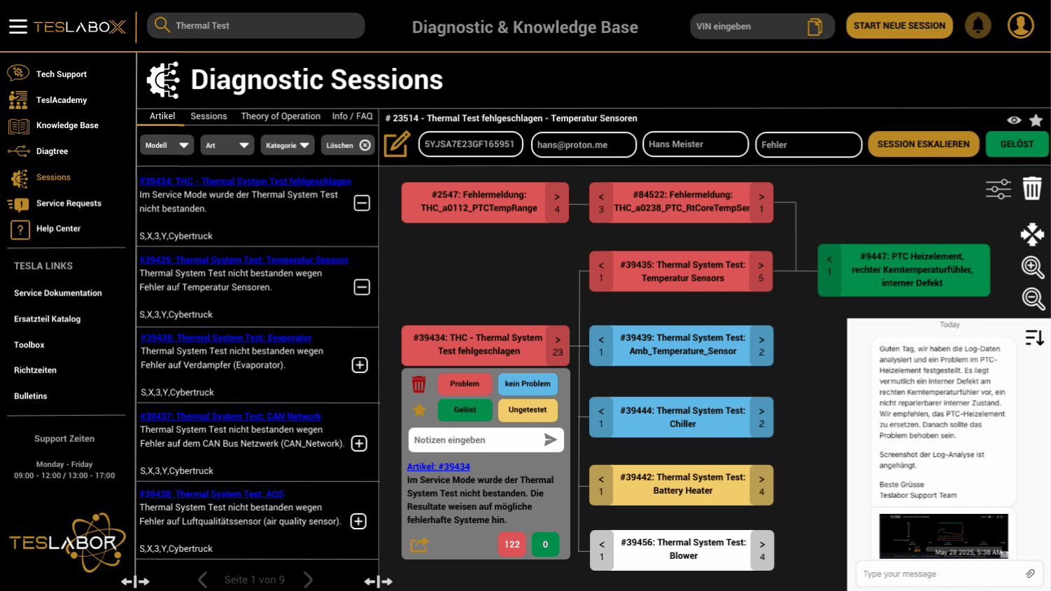 Escalation of particularly complex cases to the Teslabor expert circle for in-depth fault analysis.
