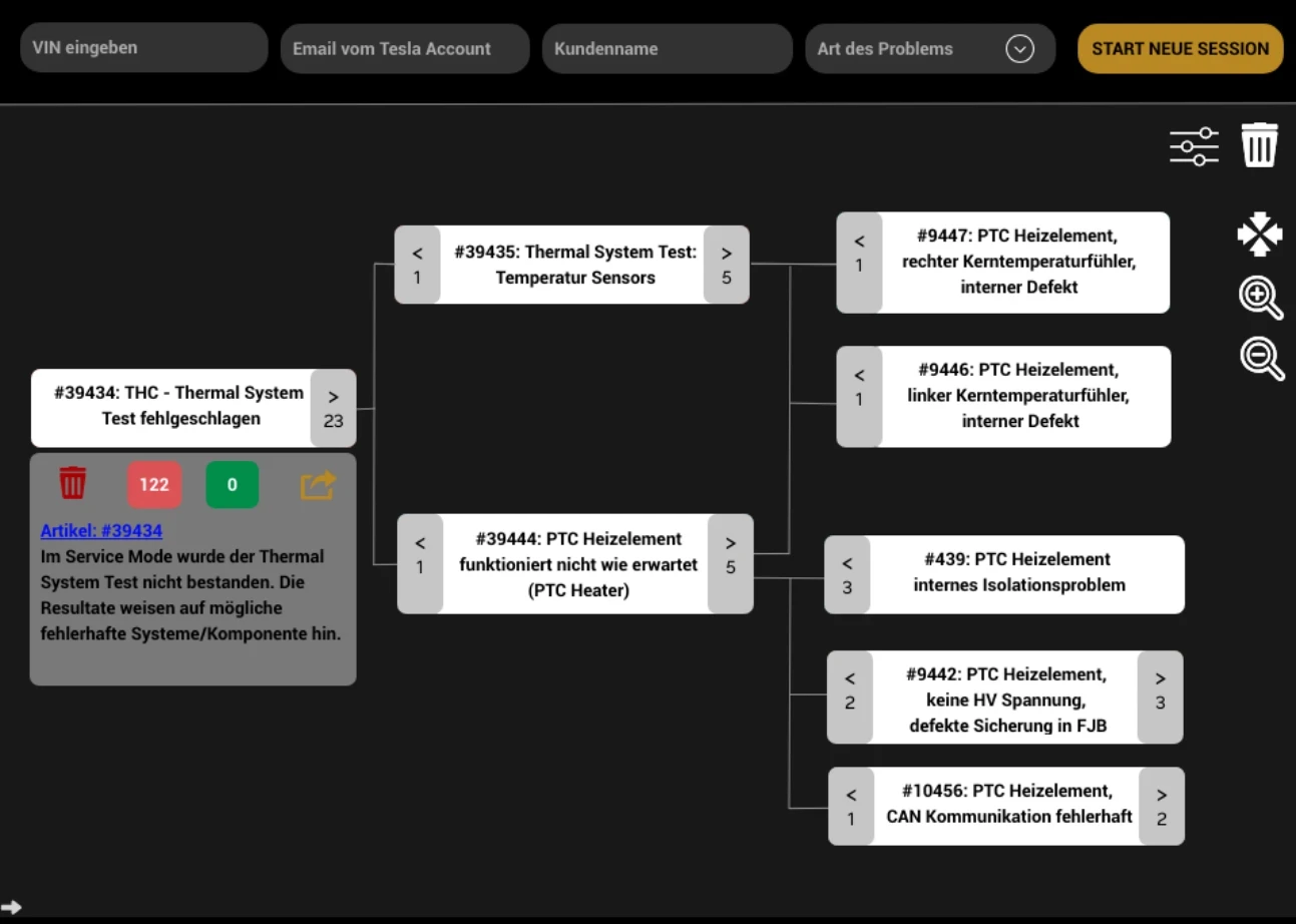 Diagtree is the visual diagnostic tool of TeslaboX. Instead of long text lists, you receive a graphically structured fault map that connects causes, symptoms and solution approaches in logical paths.